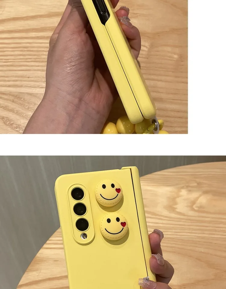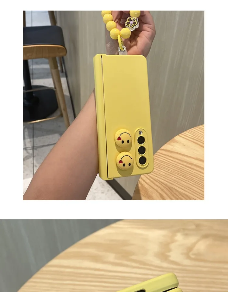 Cute 3D Smile Beads Chain Phone Case For Samsung Galaxy ZFold 5 6 7