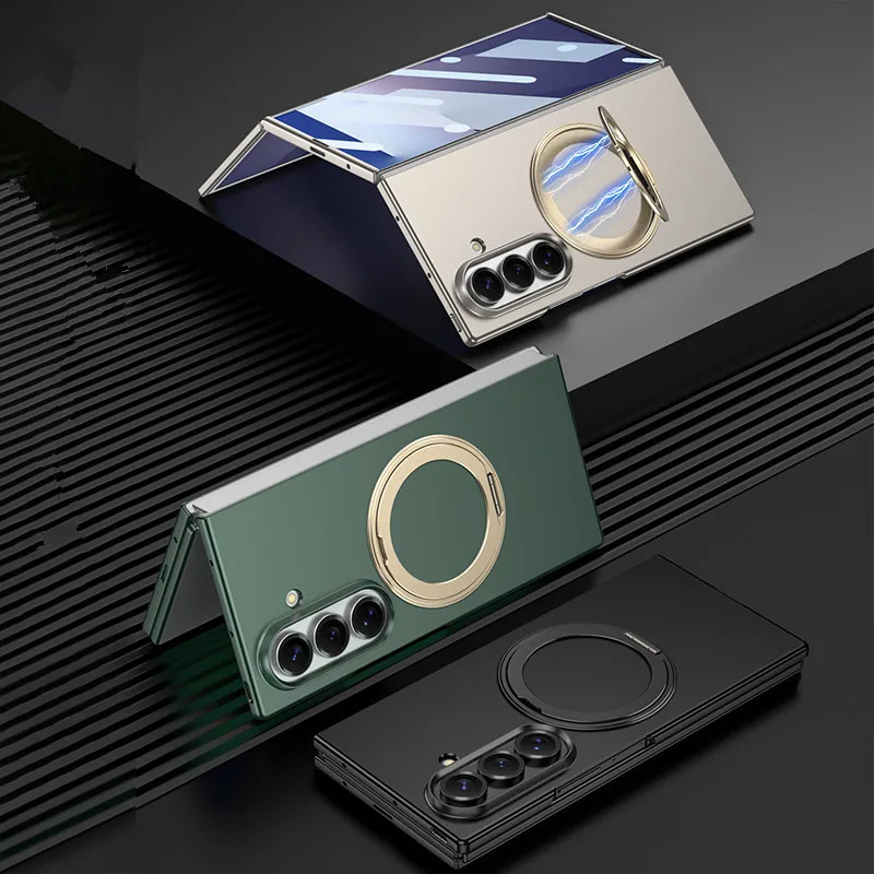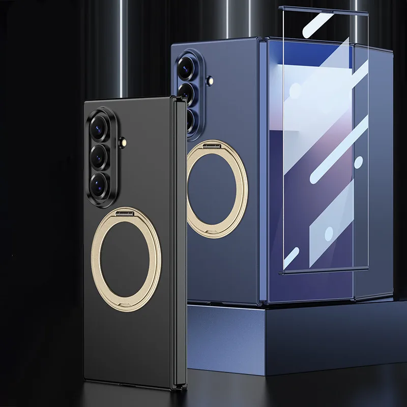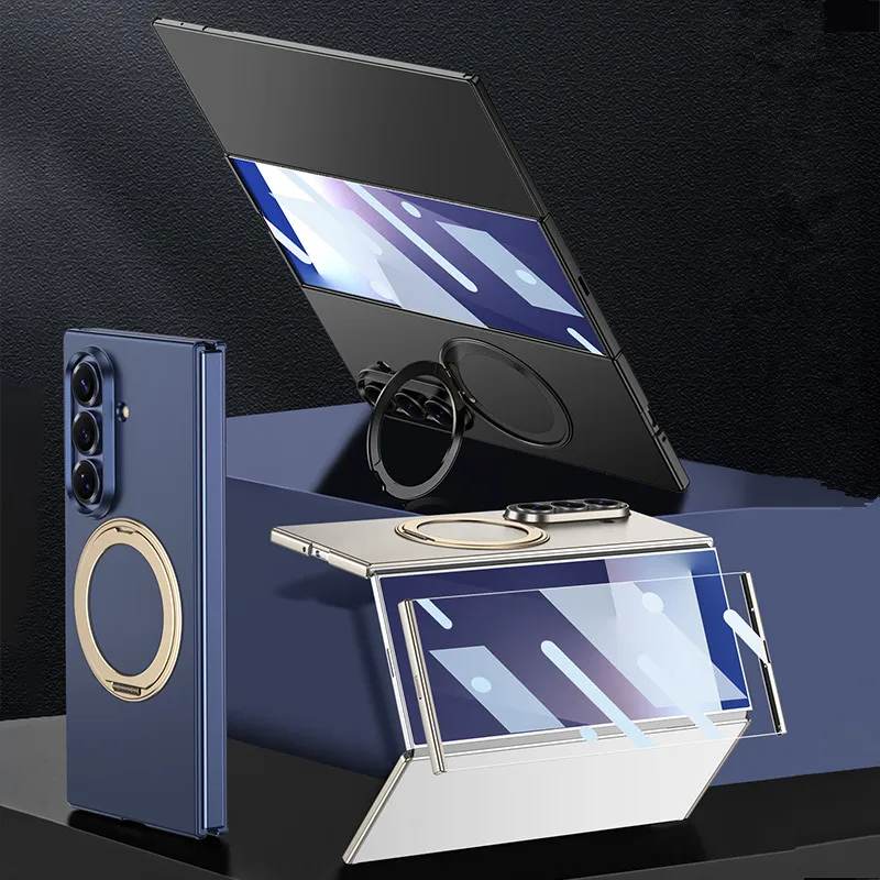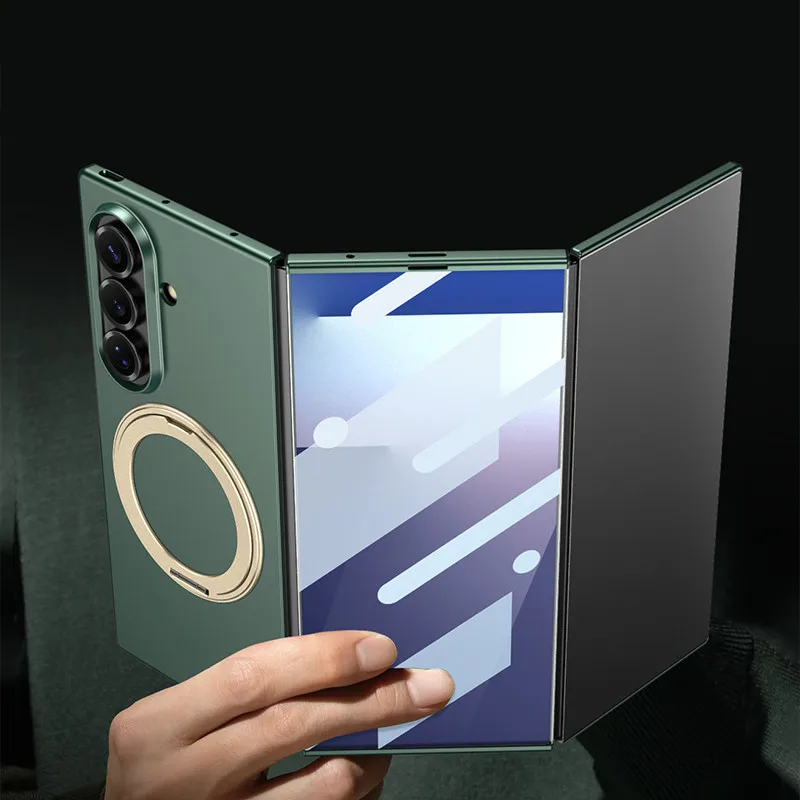 Samsung Galaxy Z TriFold Glass Screen Protector Premium PC Trible Fold Cover Case with 360° Rotating Magnetic Ring Holder Bracket